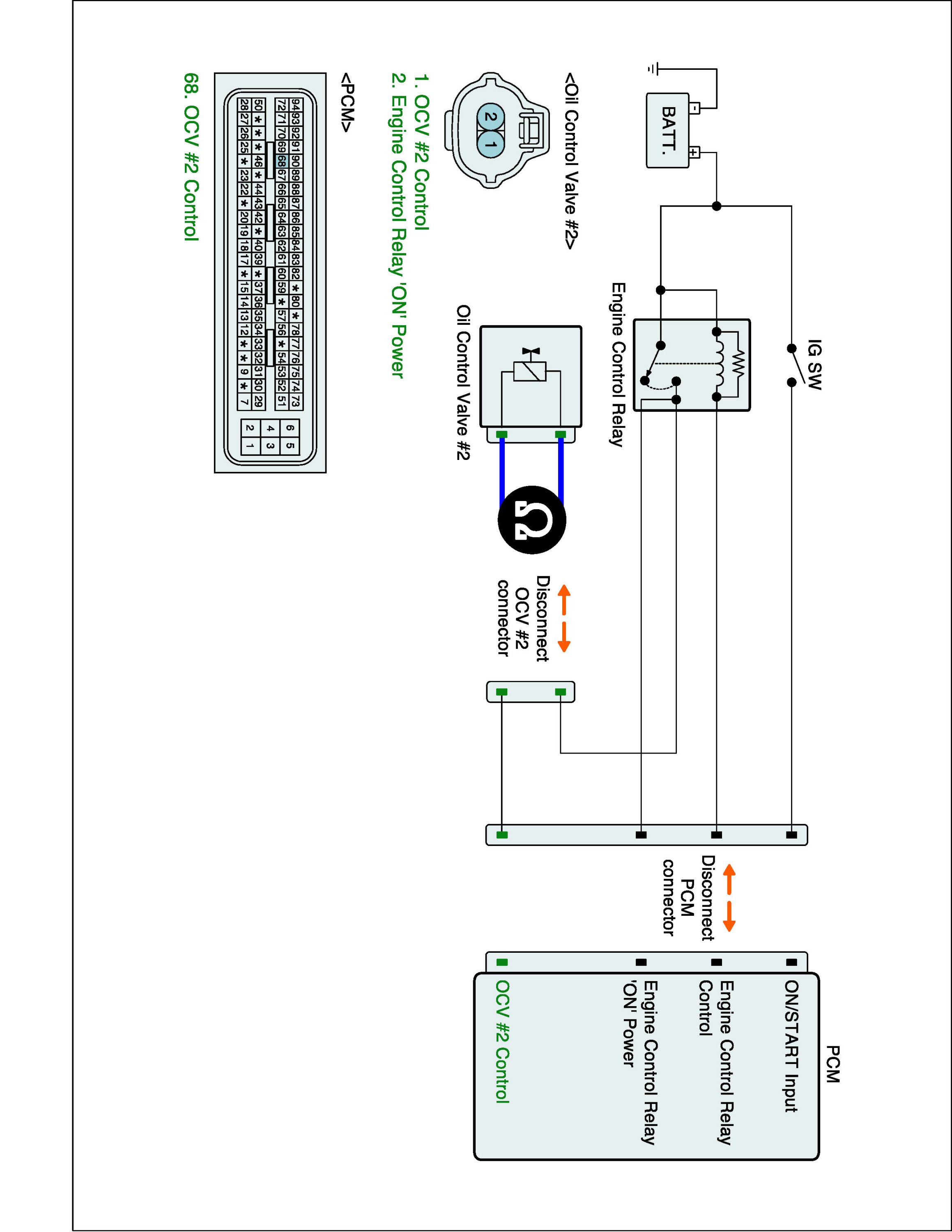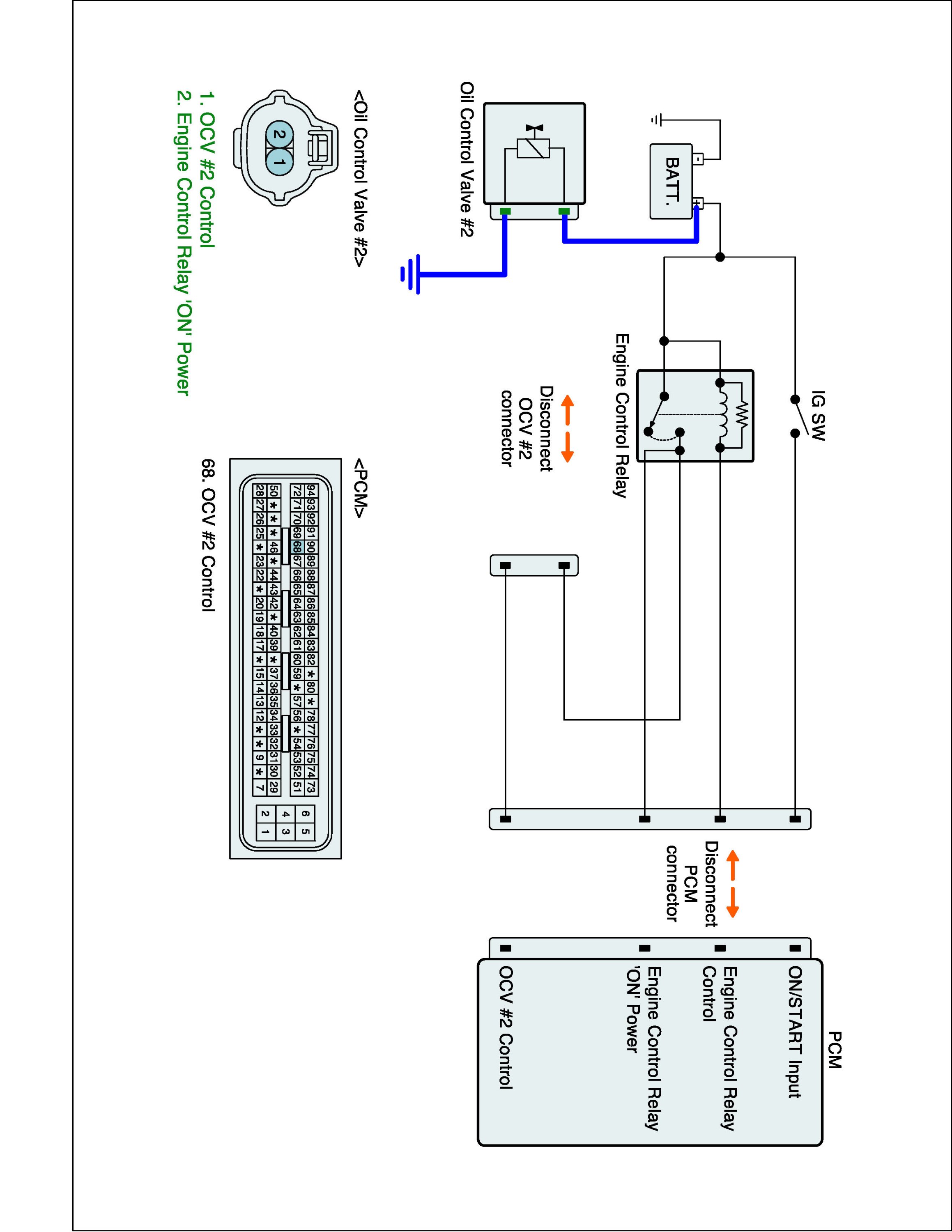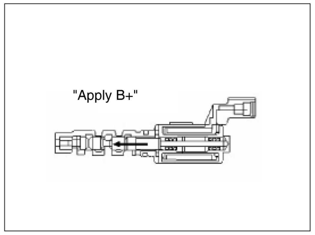 (2) With OCV connector still disconnected, apply 12 V to power terminal and connect ground to control terminal of the OCV (Component side).
