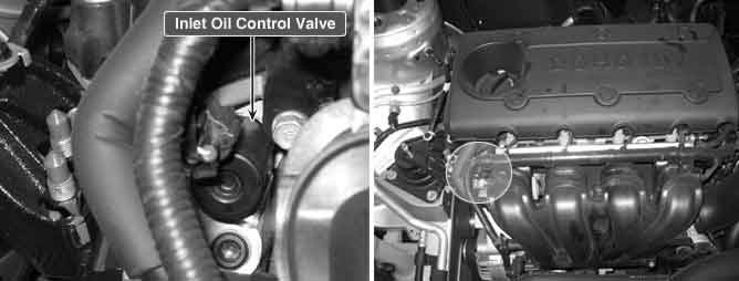 The CVVT (Continuously Variable Valve Timing) system is installed to the chain sprocket of the camshafts. This system controls the camshaft to provide optimal valve timing. The PCM controls the Oil Control Valve (OCV), based on the signals output from air flow, throttle position and engine coolant temperature. The CVVT controller regulates the camshaft angle using oil pressure through the OCV. As result, the relative position between the camshaft and the crankshaft becomes optimal, and the engine torque improves, fuel economy improves, exhaust emissions decrease under overall driving conditions.