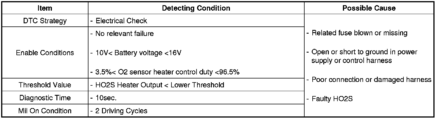 PCM sets DTC P0031 if the PCM detects that the front HO2S heater control circuit is short to ground.