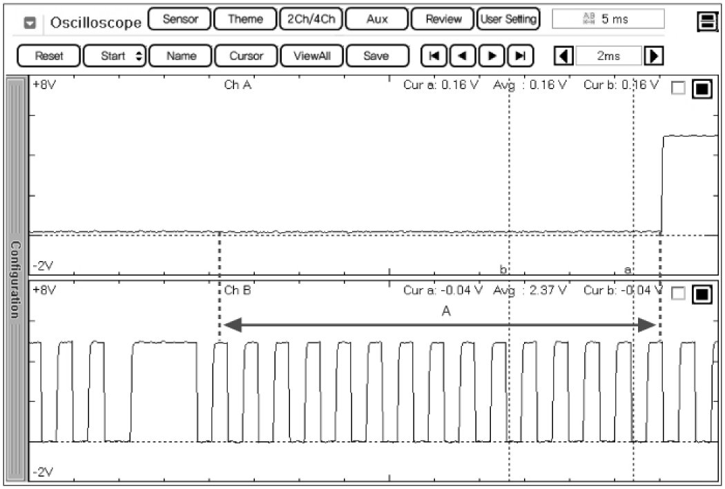 Channel A (+): Signal terminal of the CMPS #2 (back probe), (-): ground