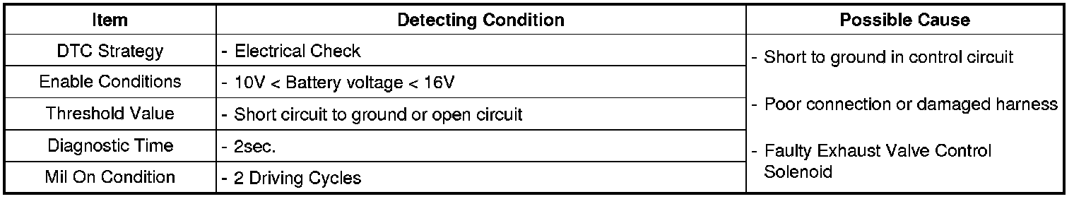 PCM sets DTC P0079 if the PCM detects that the exhaust valve control solenoid control circuit is short to ground.