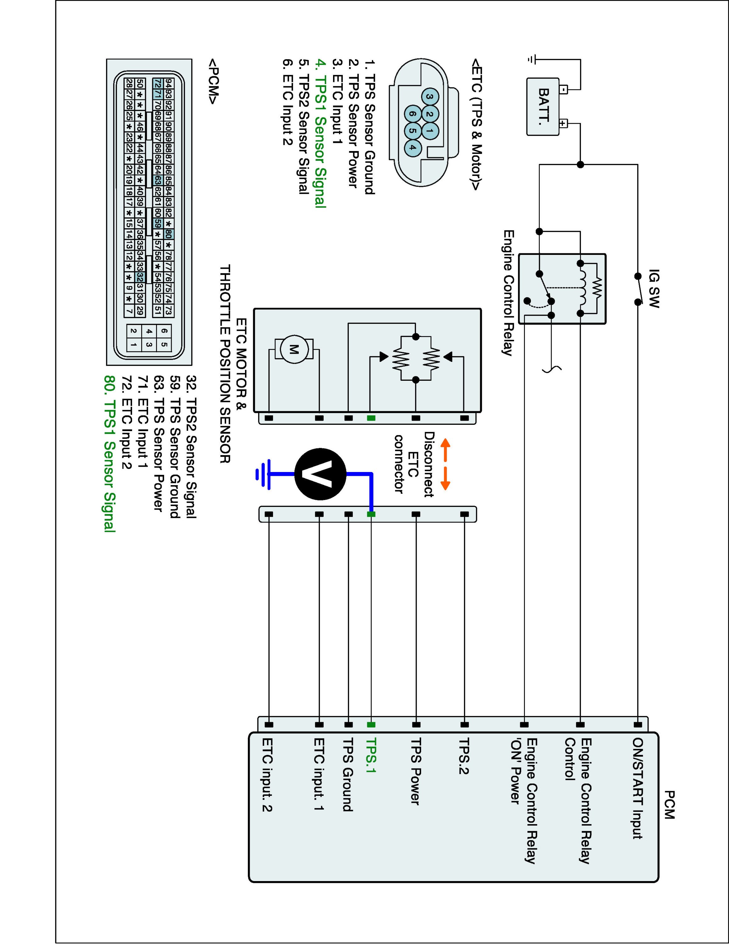 4. Measure voltage between TPS1 signal terminal of ETC harness connector and chassis ground.