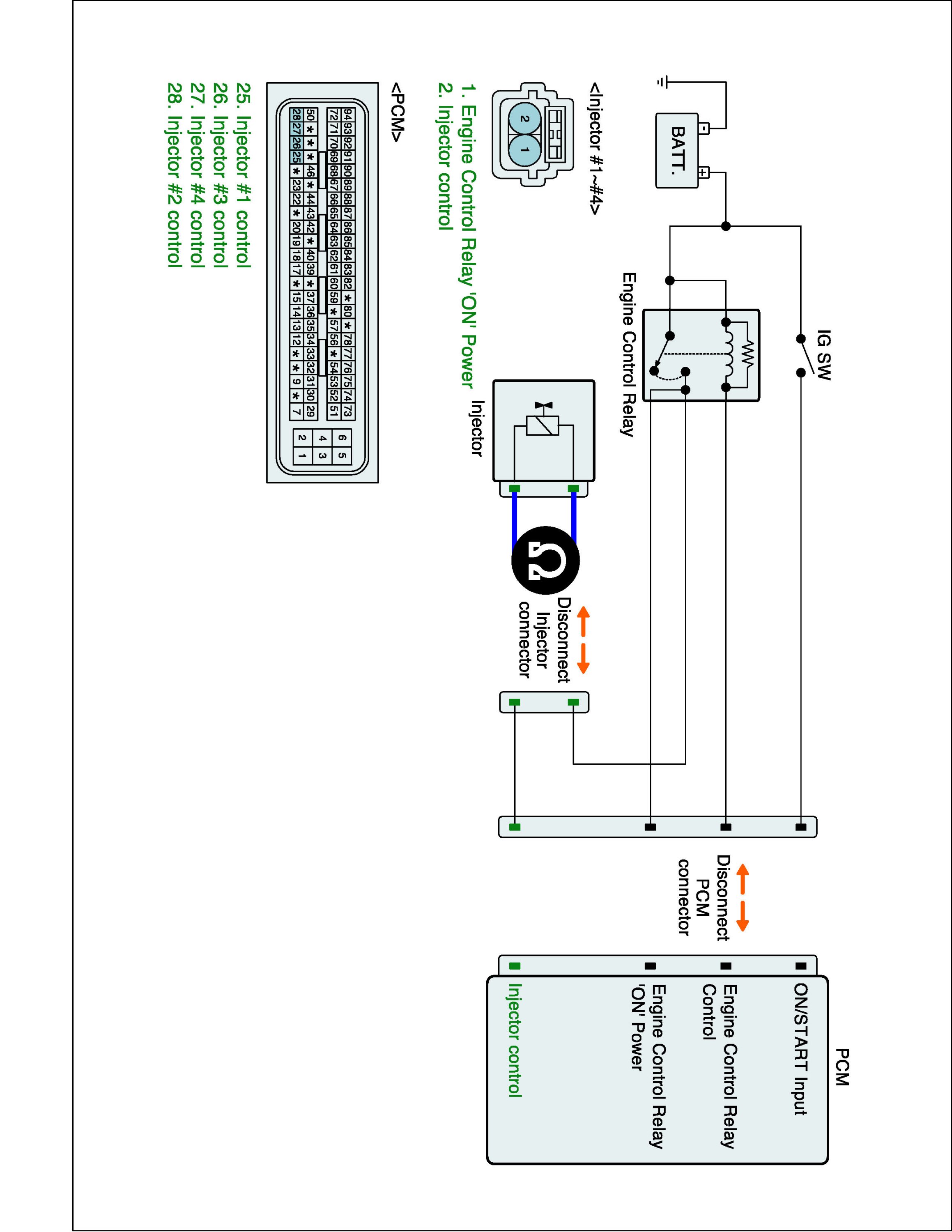 3. Measure resistance between control terminal and power terminal of the injector connector. (Component side)
