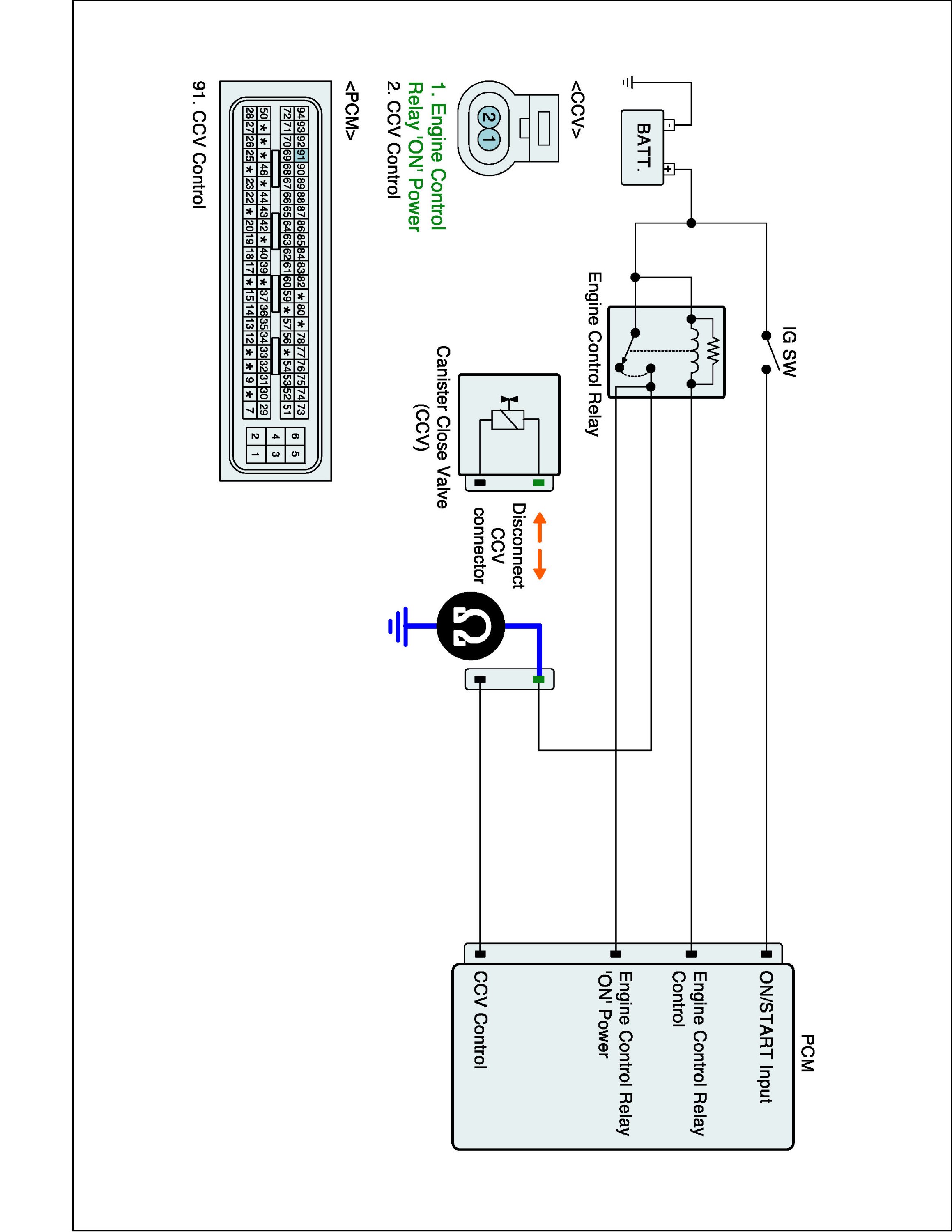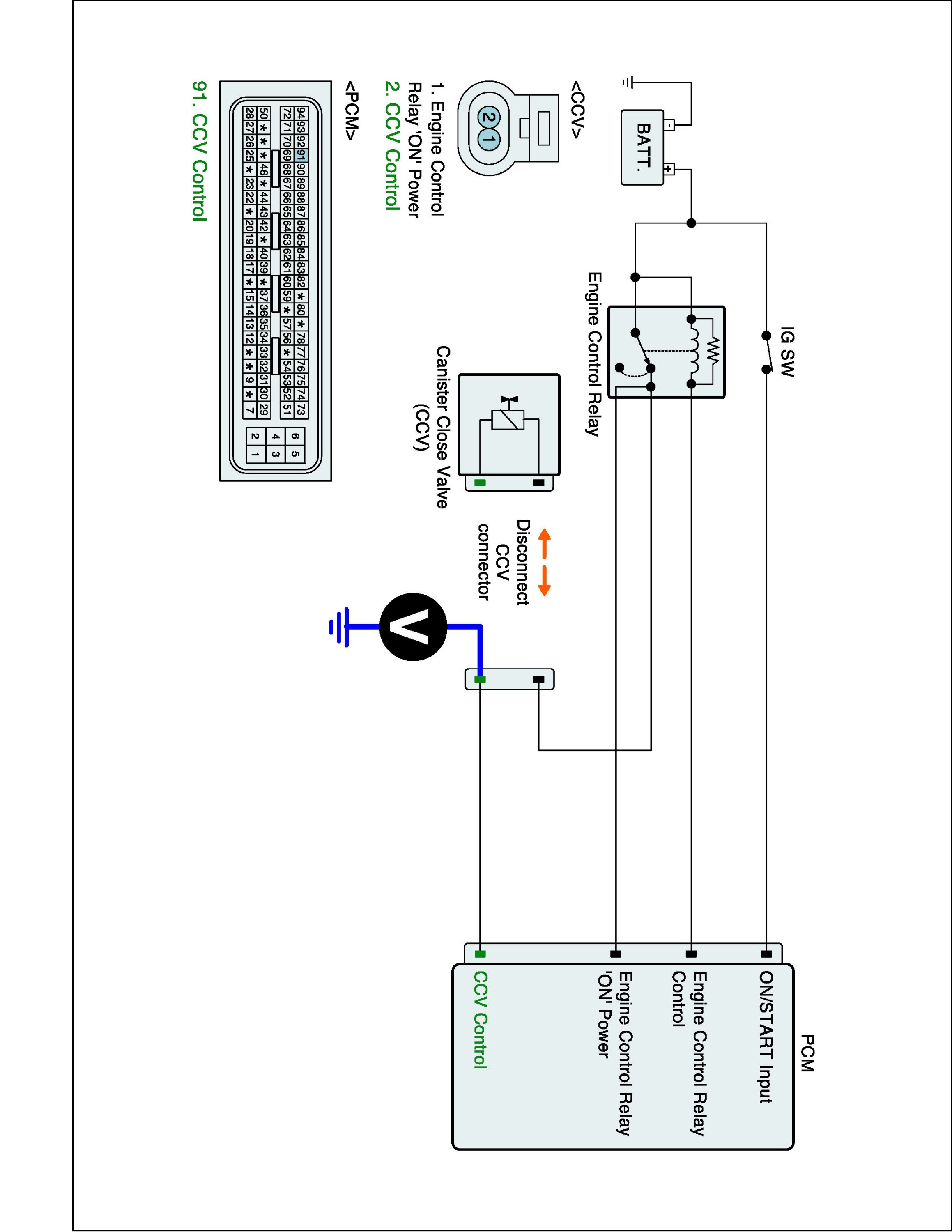 4. Measure voltage between control terminal of CCV harness connector and chassis ground.