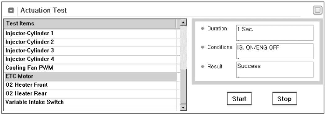 1. Select 'Actuation Test' mode and execute 'ETC motor' item.