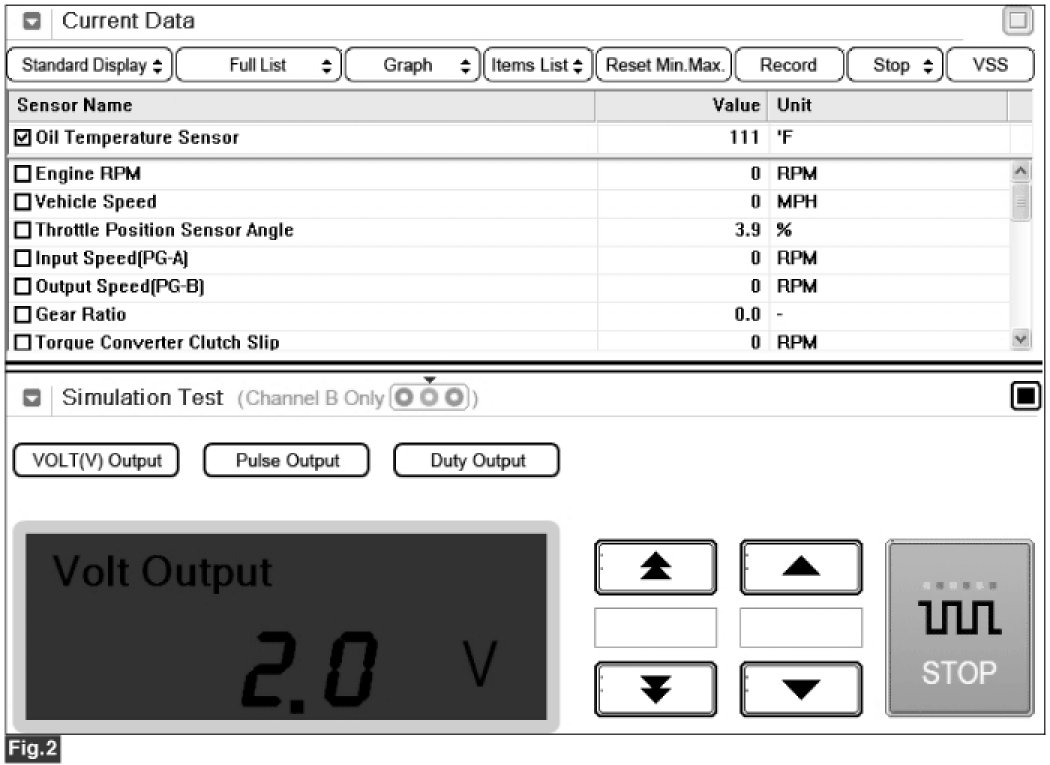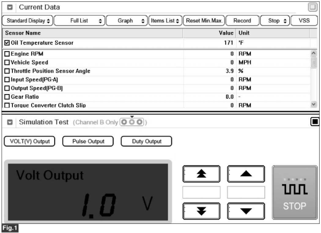 4. Simulate voltage (0->5 V) to "OIL TEMPERATURE SENSOR" signal circuit.