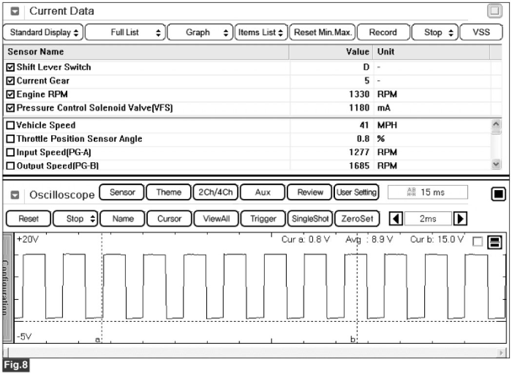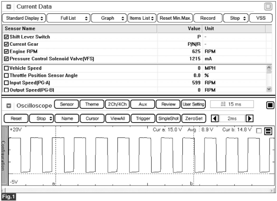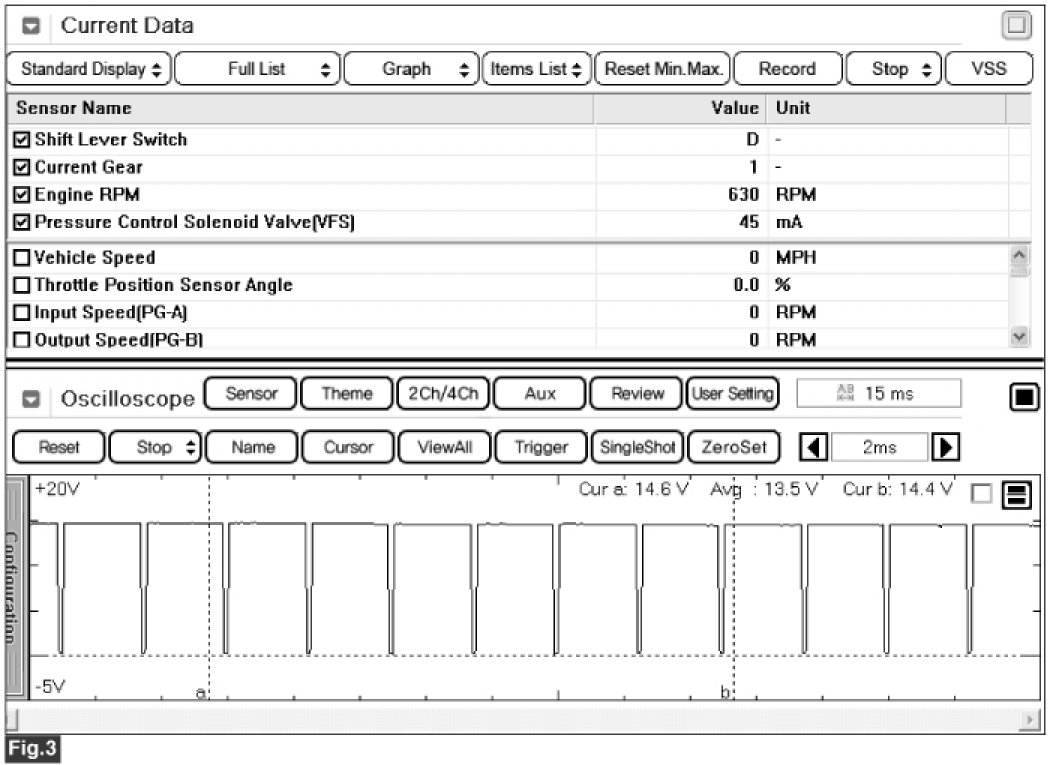Fig 3) "D Range 1st" gear,VEHICLE SPEED=0