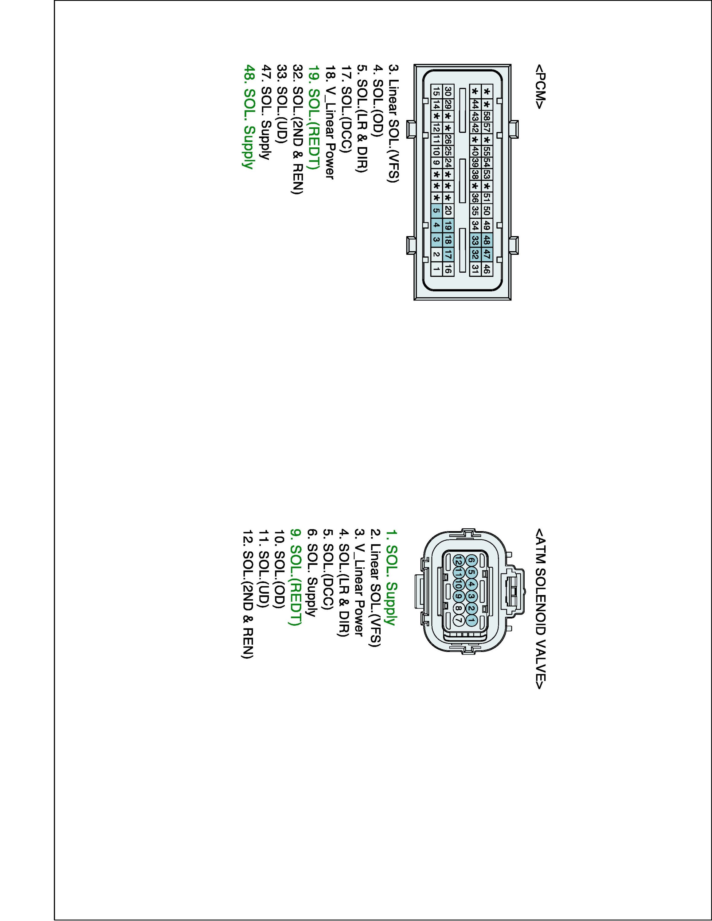 (3) Measure resistance between "RED SOLENOID" terminal and "Power" terminal of the ATM SOLENOID VALVE harness connector.