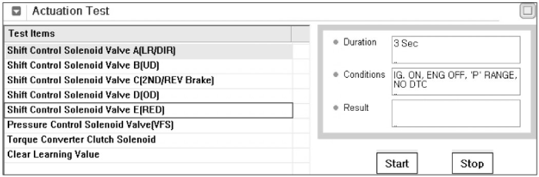 (3) Select A/T Solenoid valve Actuator test and Operate Actuator test.