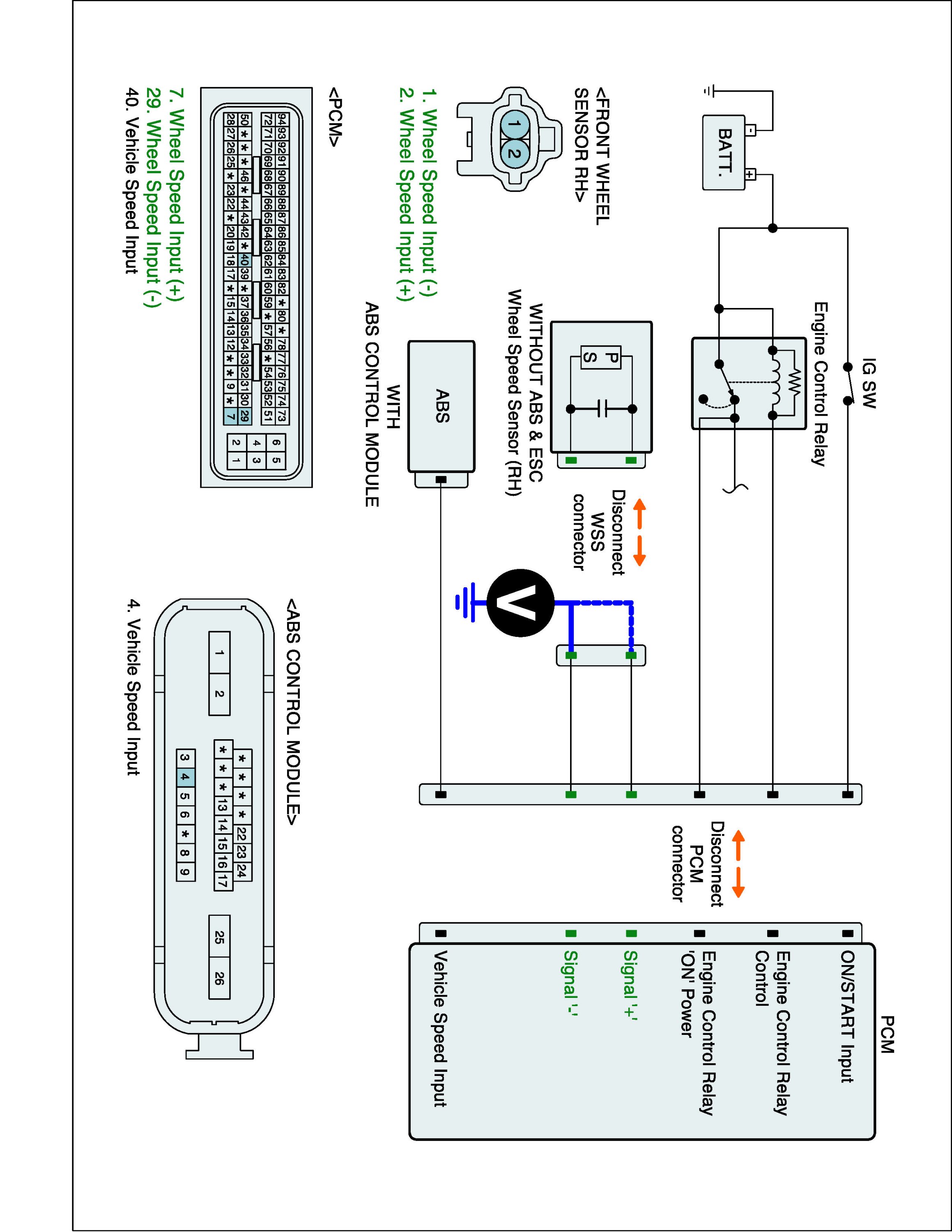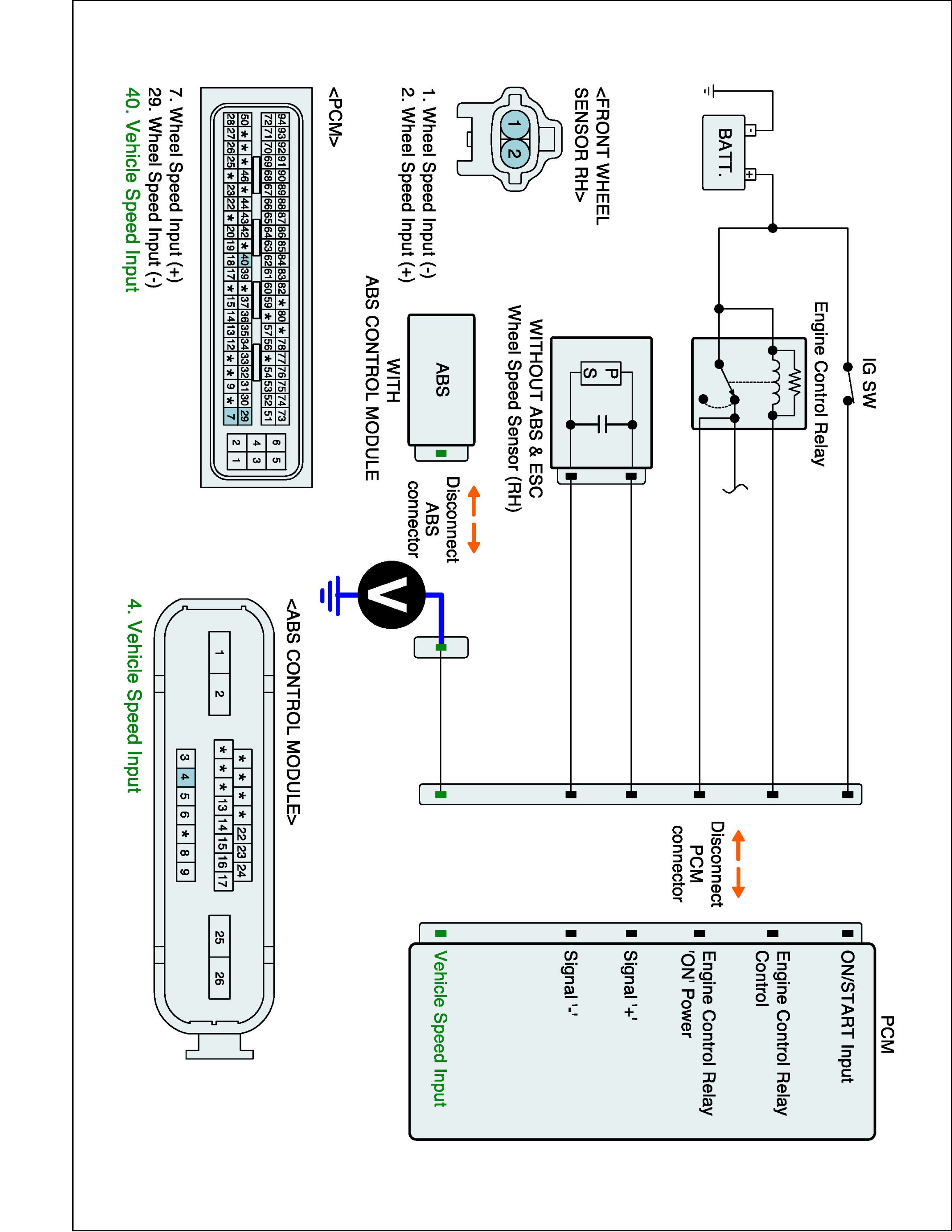 (2) Disconnect PCM and wheel speed sensor (front right) harness connector.