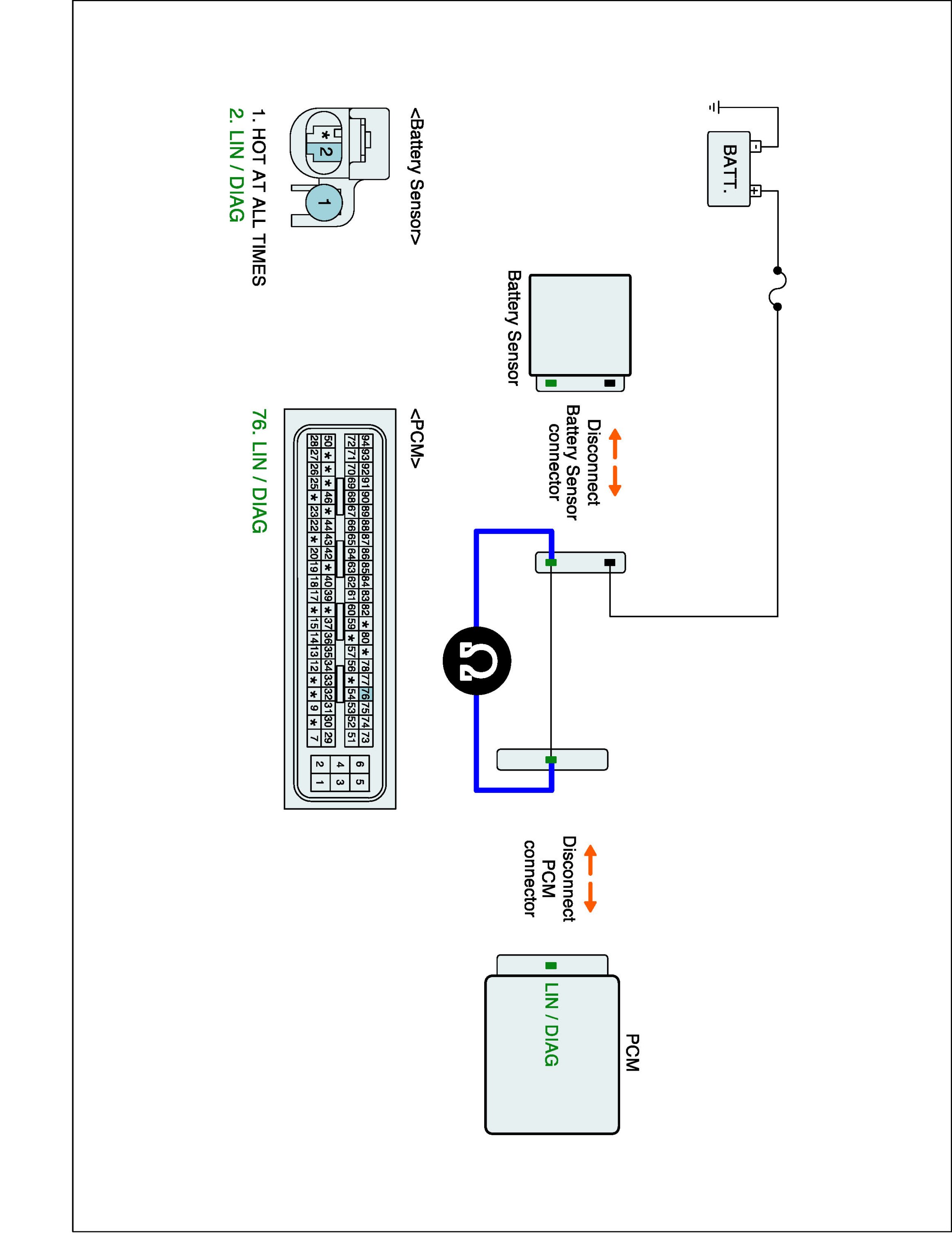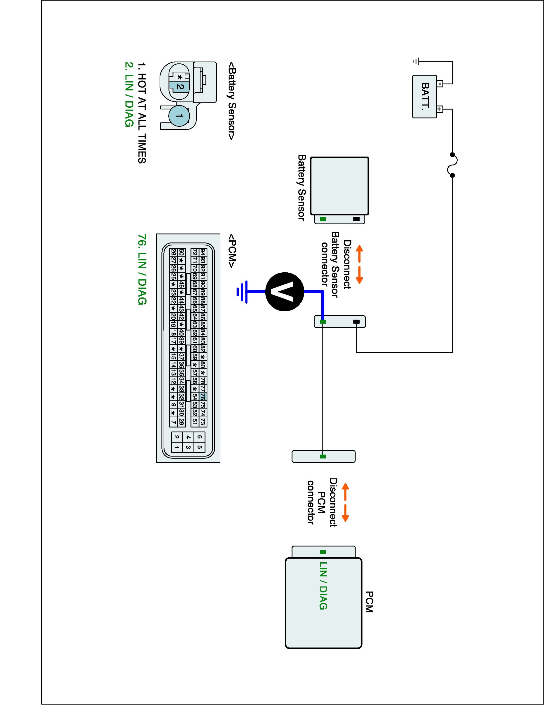 1. IG "OFF" and disconnect battery sensor and ECM connector.