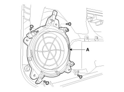 2. Remove the rear speaker(A) after removing 4 rivets and electrical connector.