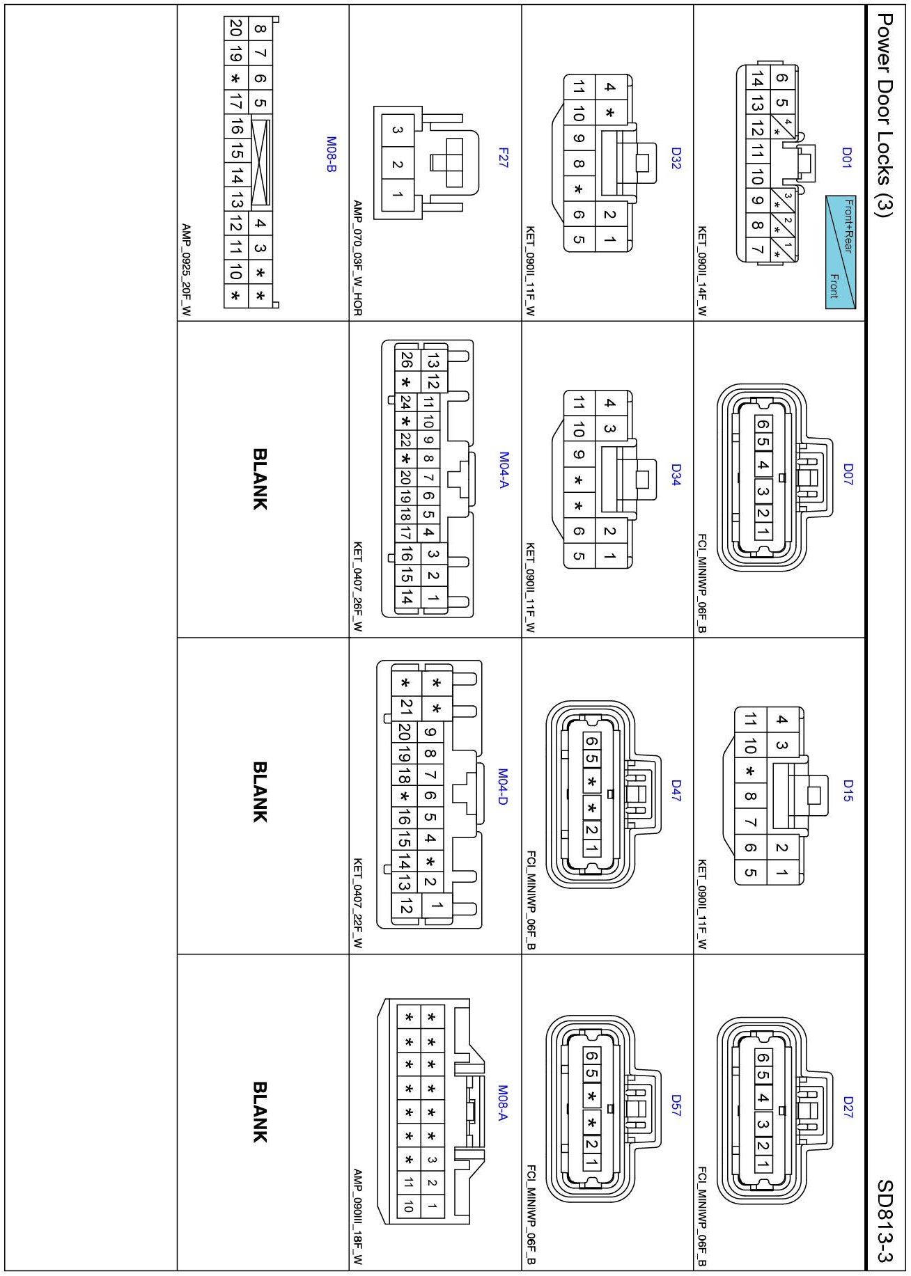 Power Door Locks (3) Connector Pin Outs: