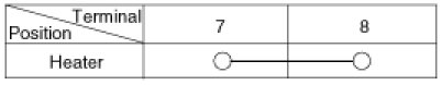 2. Apply battery voltage to each terminal as shown in the table and verify that the mirror operates properly.