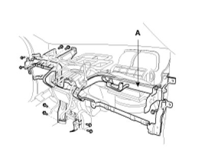 12. After loosening the mounting bolts and nuts, remove the cowl cross bar (A).