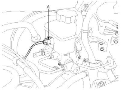 3. Disconnect the brake fluid level switch connector (A) from the reservoir.