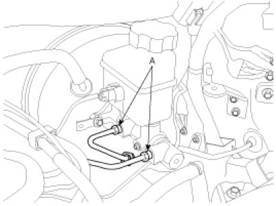 5. Disconnect the brake tube (A) from the master cylinder by loosening the tube flare nut.
