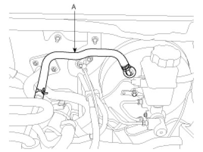 2. Disconnect the vacuum hose (A) from the brake booster.