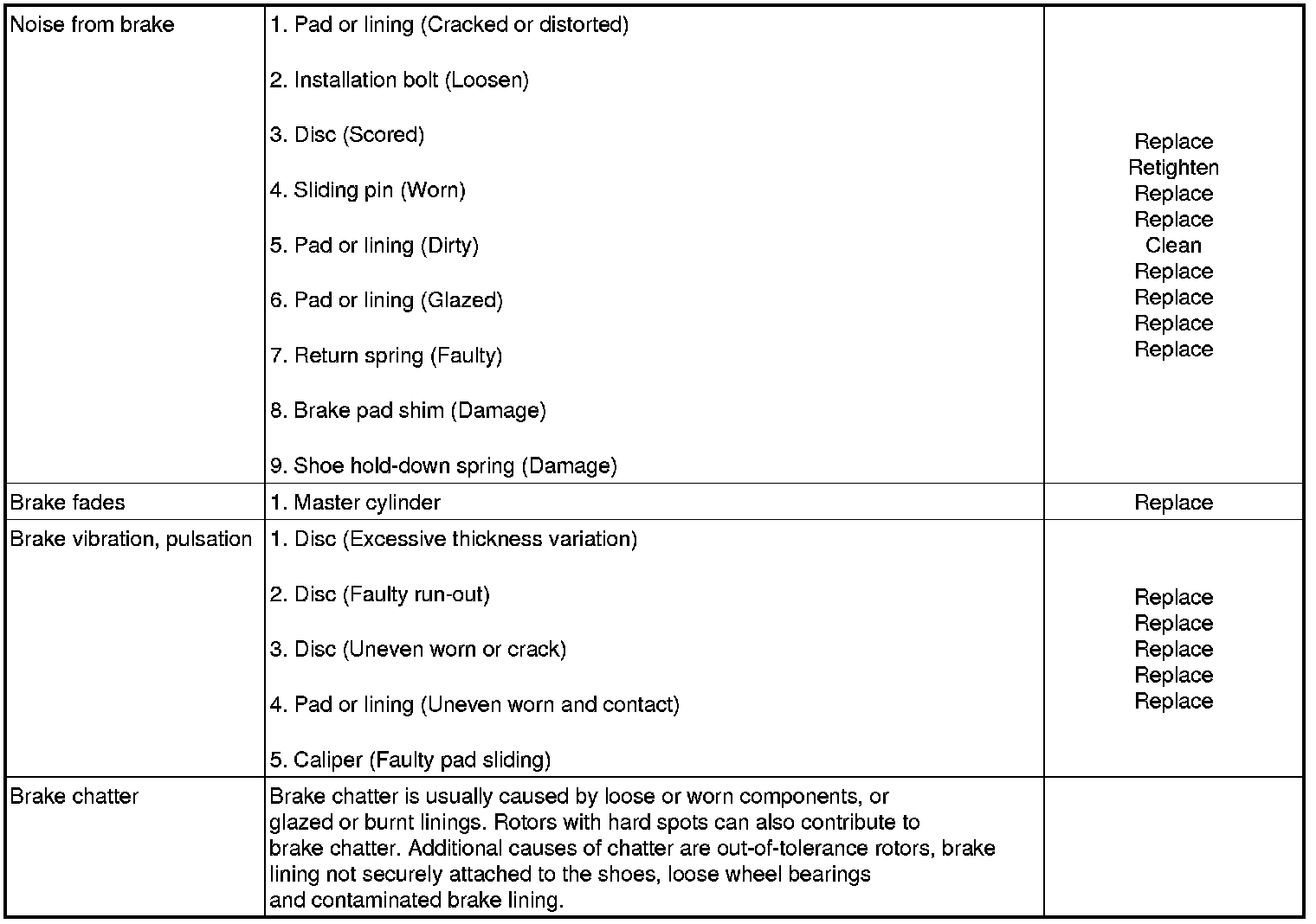 Use the table below to help you find the cause of the problem. The numbers indicate the priority of the possible cause of the problem. Check each part in order. If necessary, replace these parts.