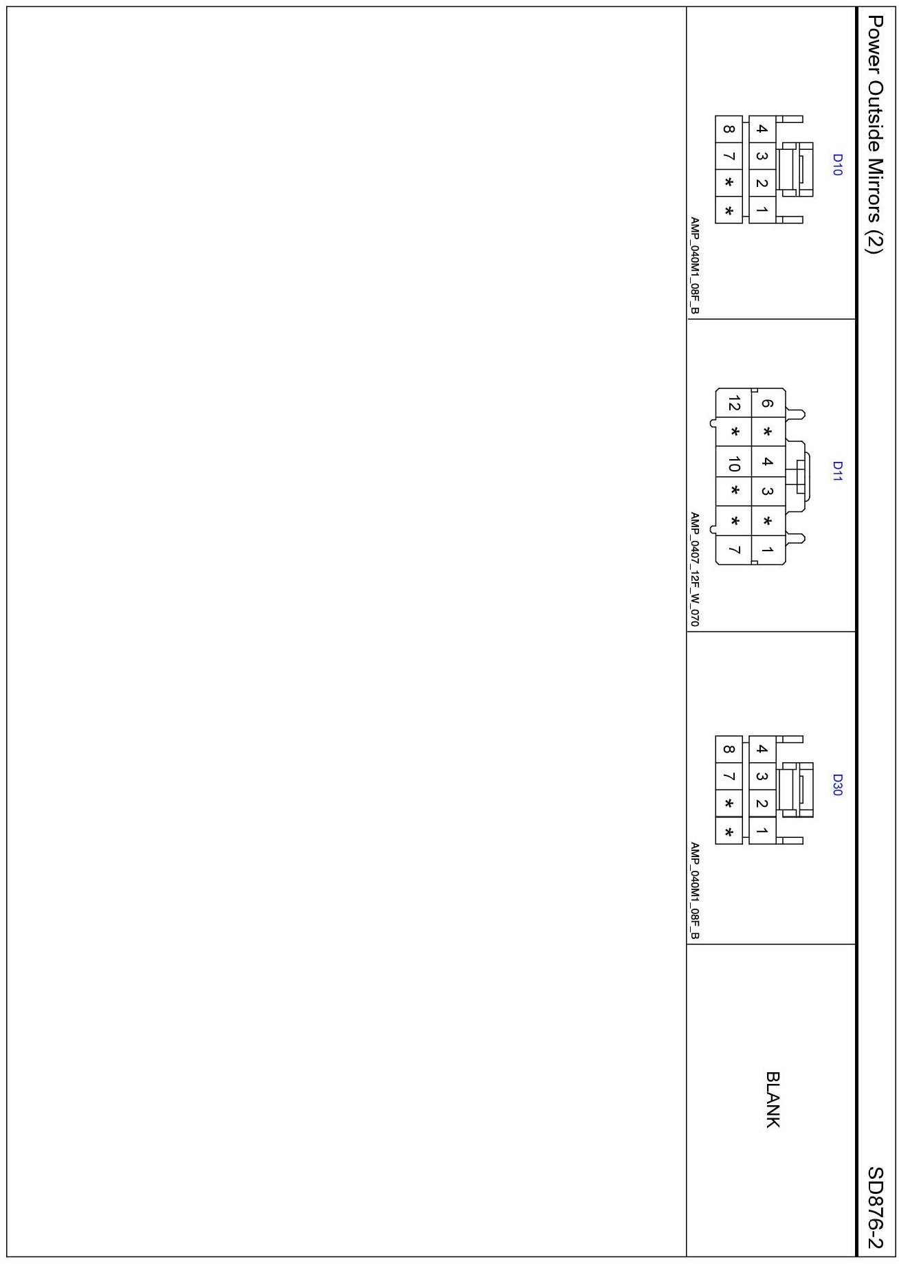 SD876-2 Power Outside Mirrors (2) Connector Pin Outs: