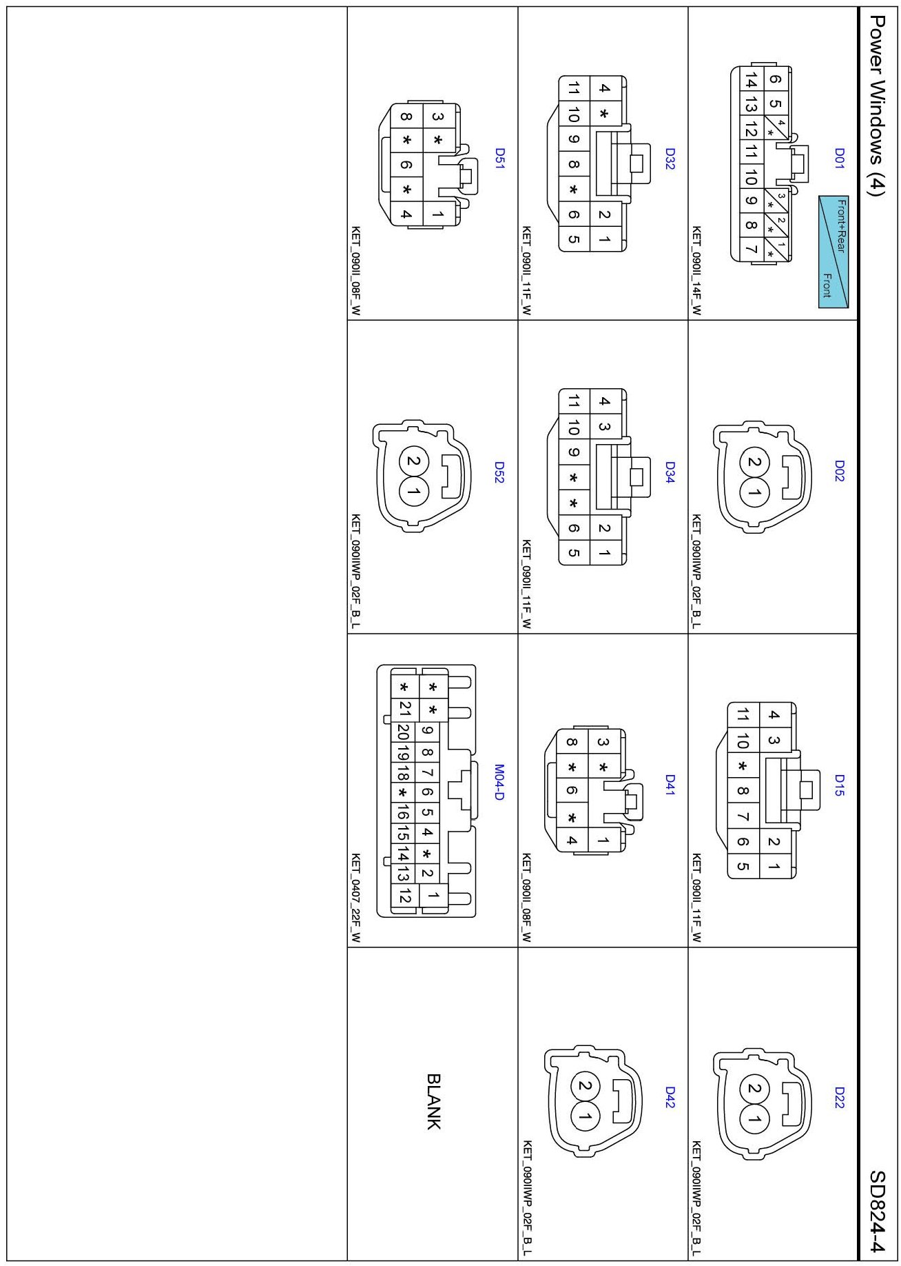 Power Windows (4) Connector Pin Outs: