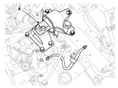 22. Disconnect the ground line and then remove the engine mounting bracket (A).
