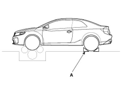 2. Drive the vehicle onto a speedometer tester. Use wheel chocks(A) as appropriate.