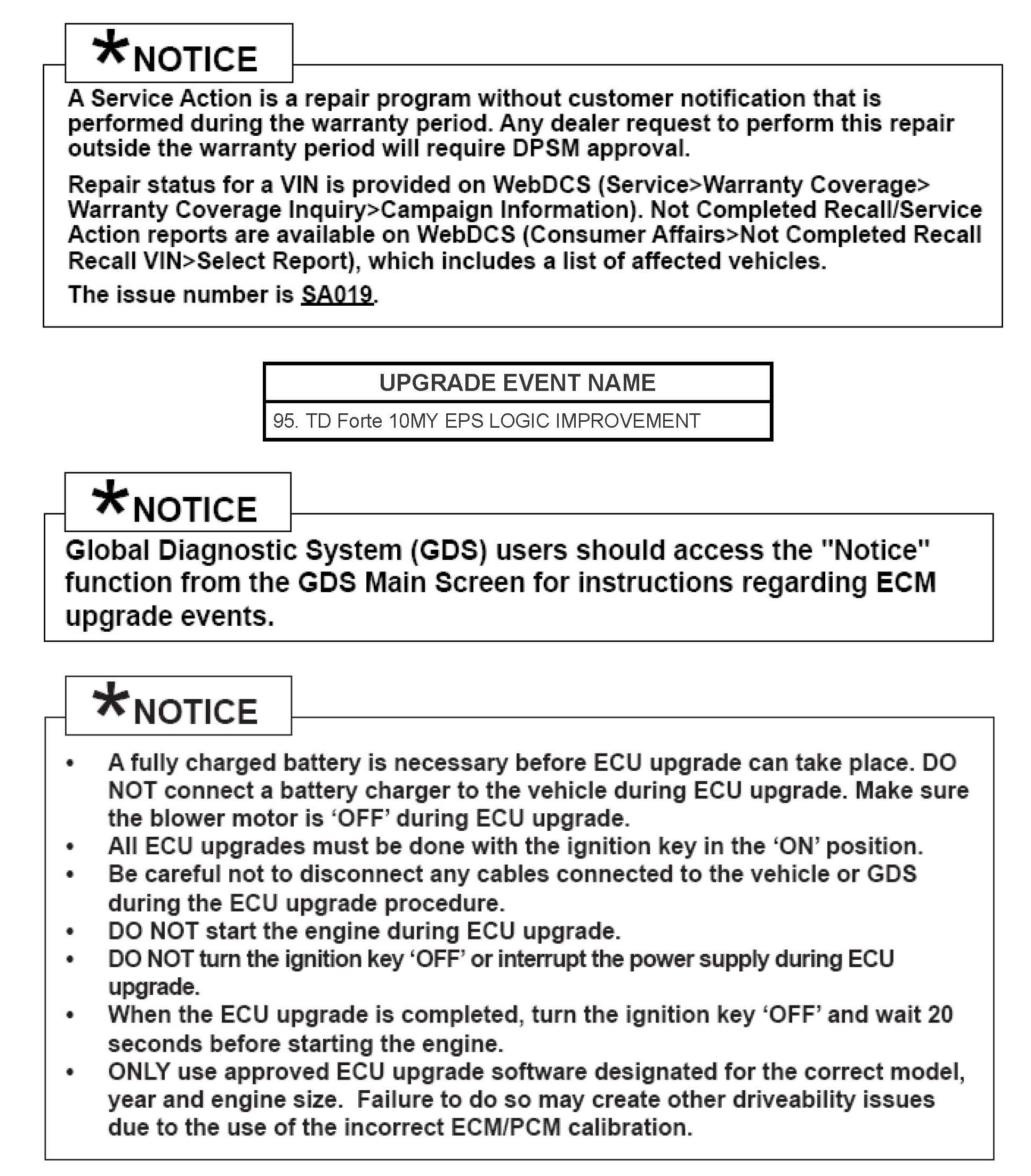 Service Action: ECU Upgrade for Motor Driven Power