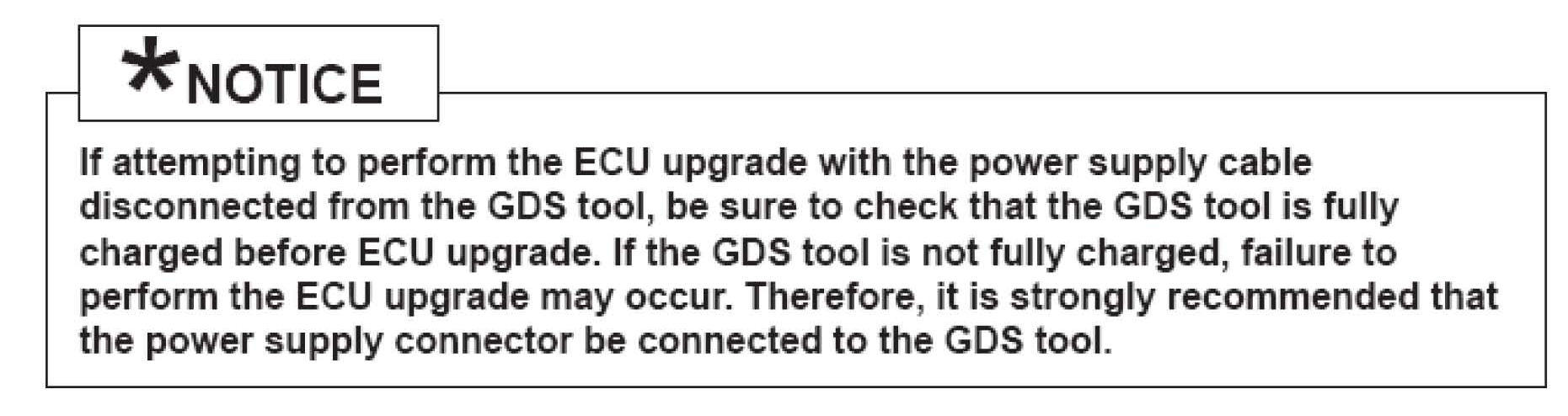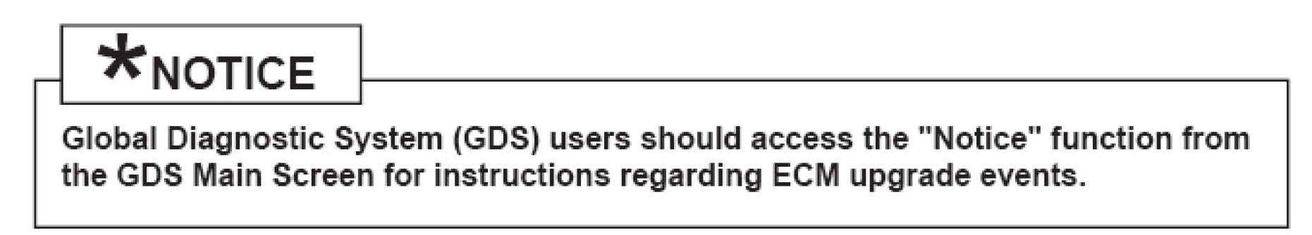 7. When the GDS tool reports that the ECM upgrade has been successfully completed, click OK, turn OFF the ignition key, and wait at least 10 seconds before attempting to start the engine.