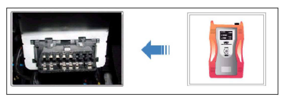1. Connect the 16-pin DLC cable from the GDS into the OBD-II connector, located under the driver's side of the instrument panel.