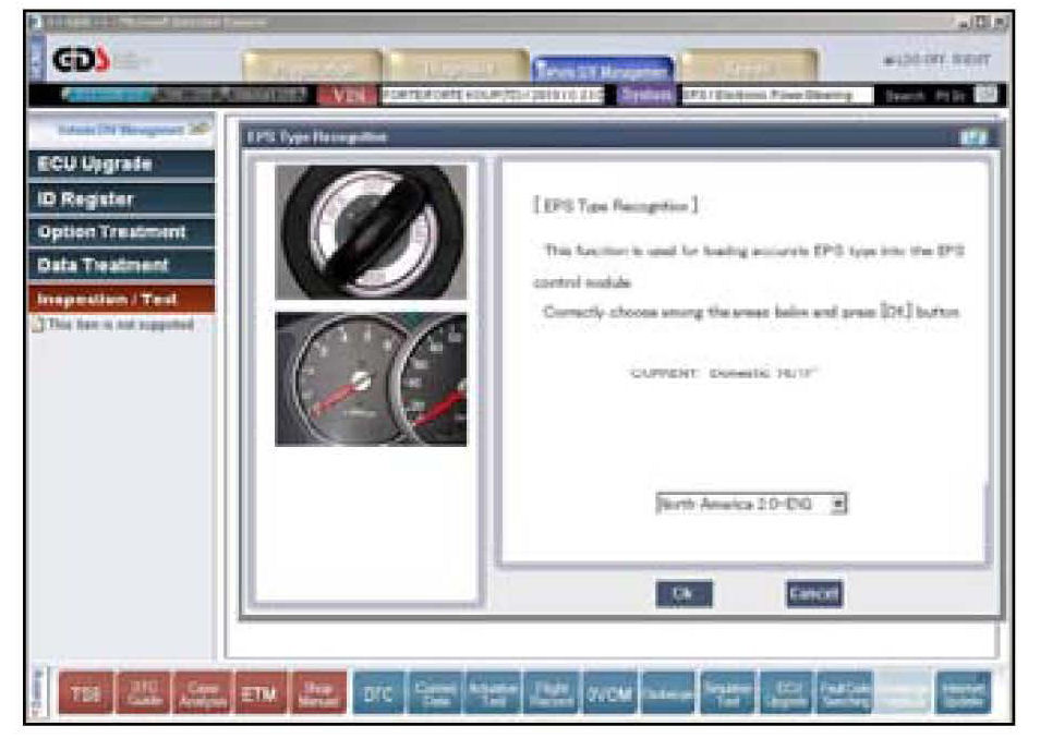 2. Select the "System Option", and the "EPS Type Recognition". Confirm the vehicle type, and then press OK.