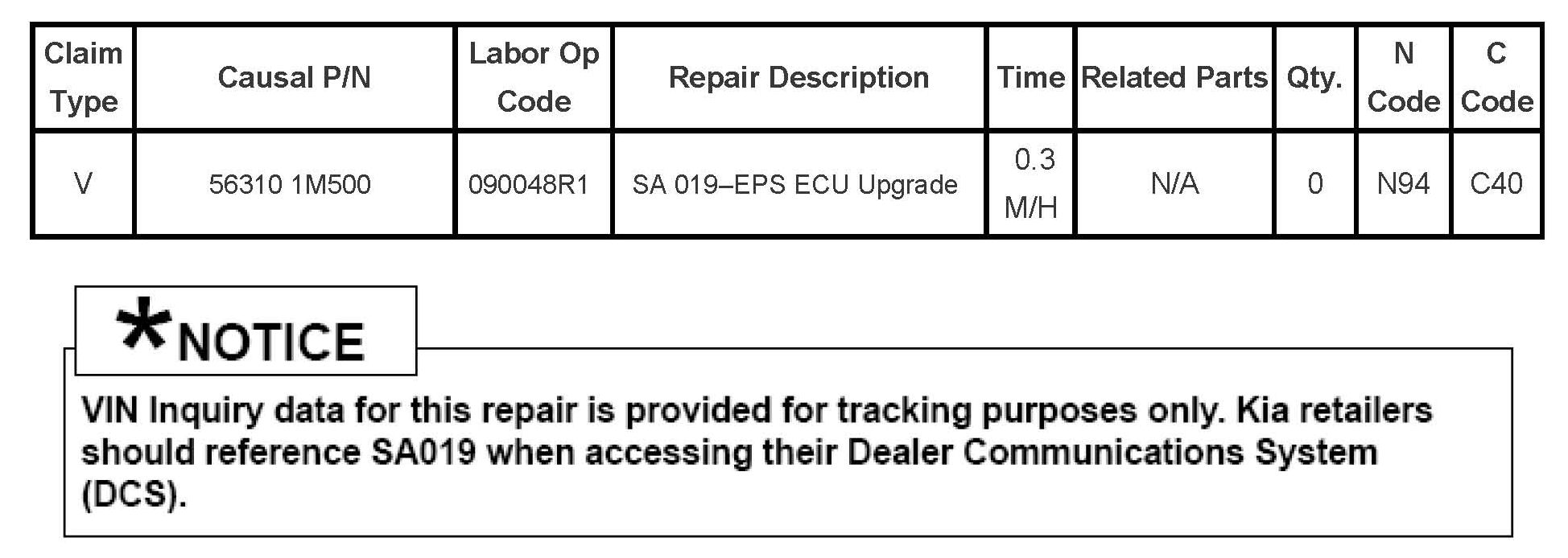 Campaign SA019 - PCM Update For EPS MIL ON/DTC C2412