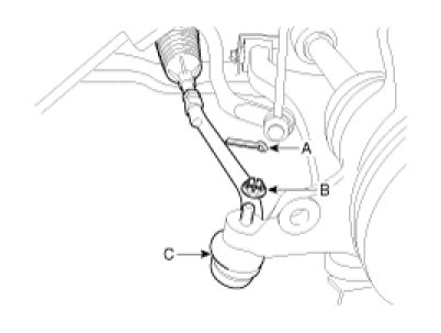 (3) Disconnect the ball joint(C) from knuckle using the special tool (09568-4A000).