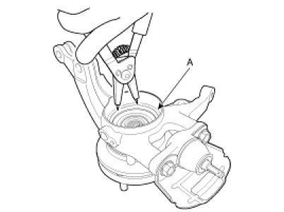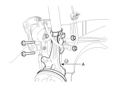 10. Loosen the strut mount bolts and then remove the knuckle assembly(A).