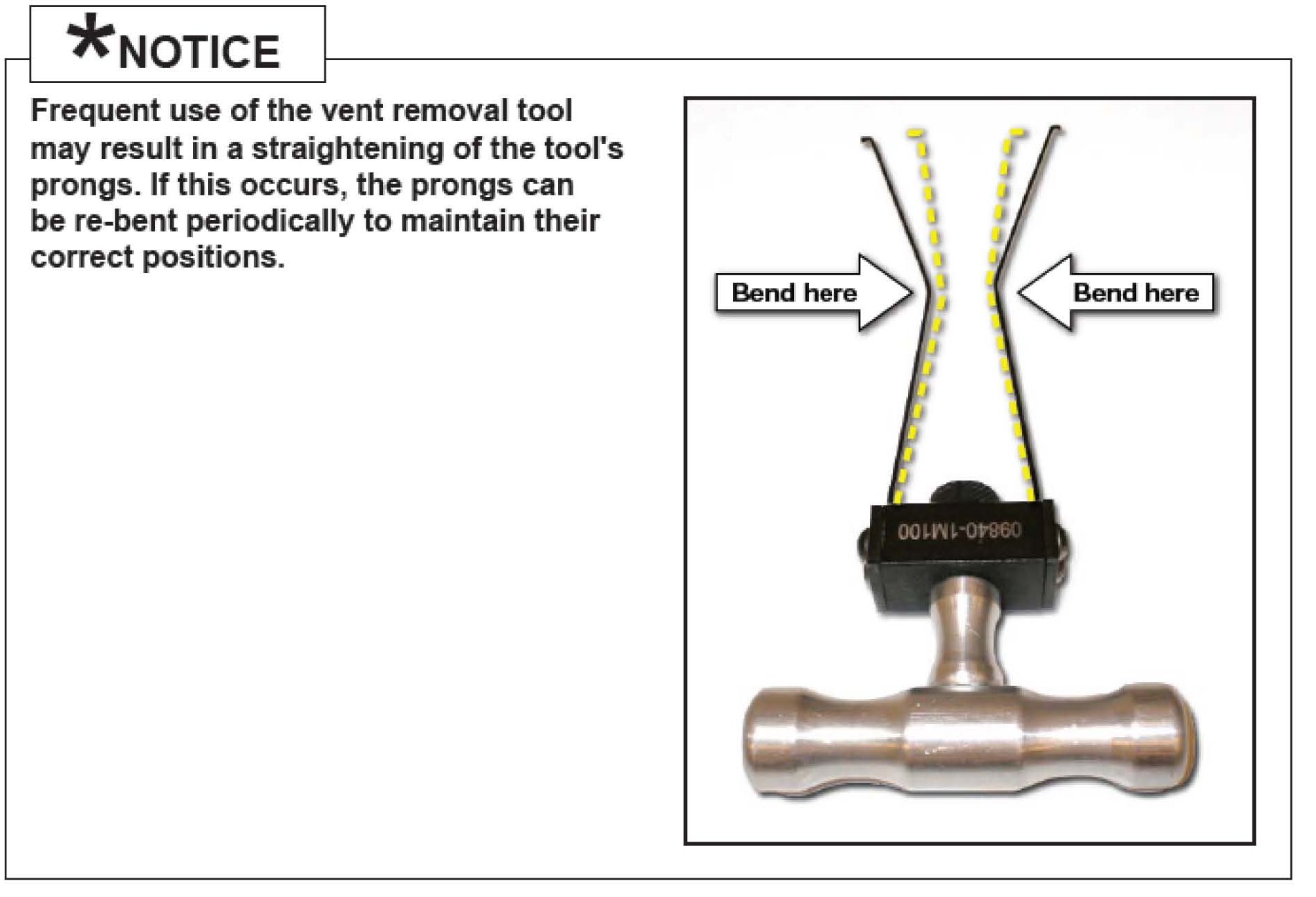 3. Insert the Air Vent Remover (09840-1M100) into the air vent as marked.