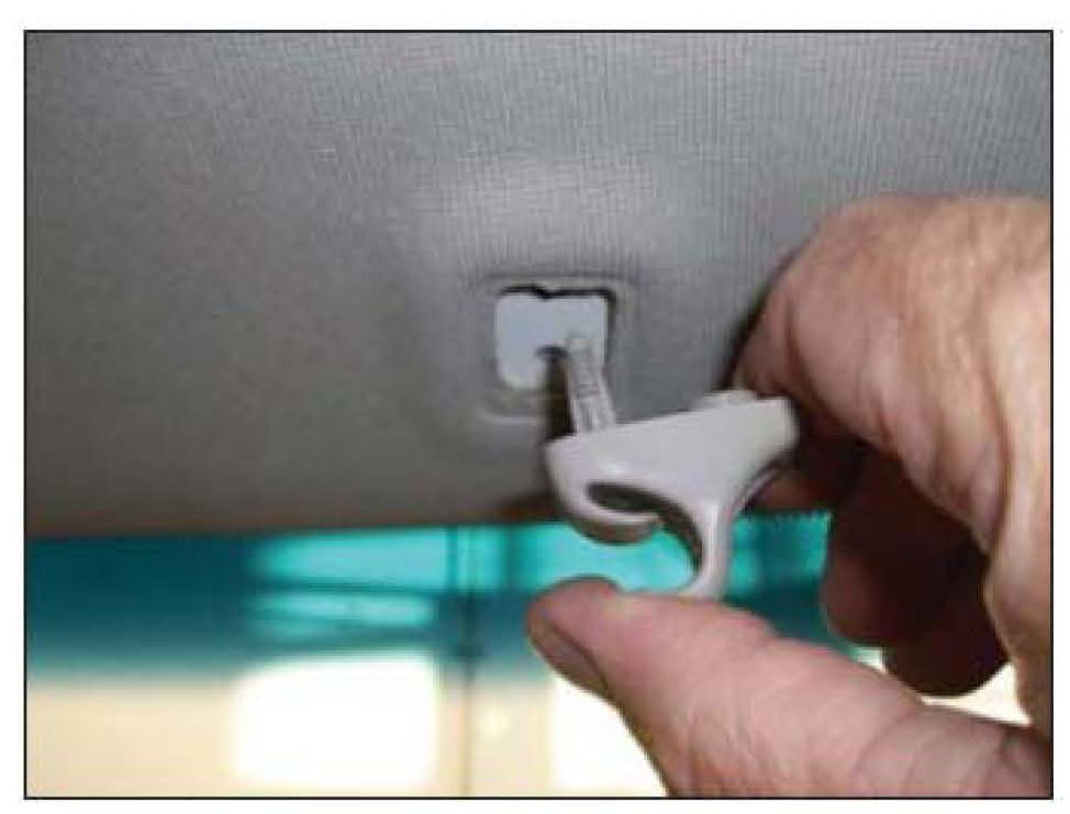 5. Install a new improved sunvisor retainer using the reverse order of removal.
