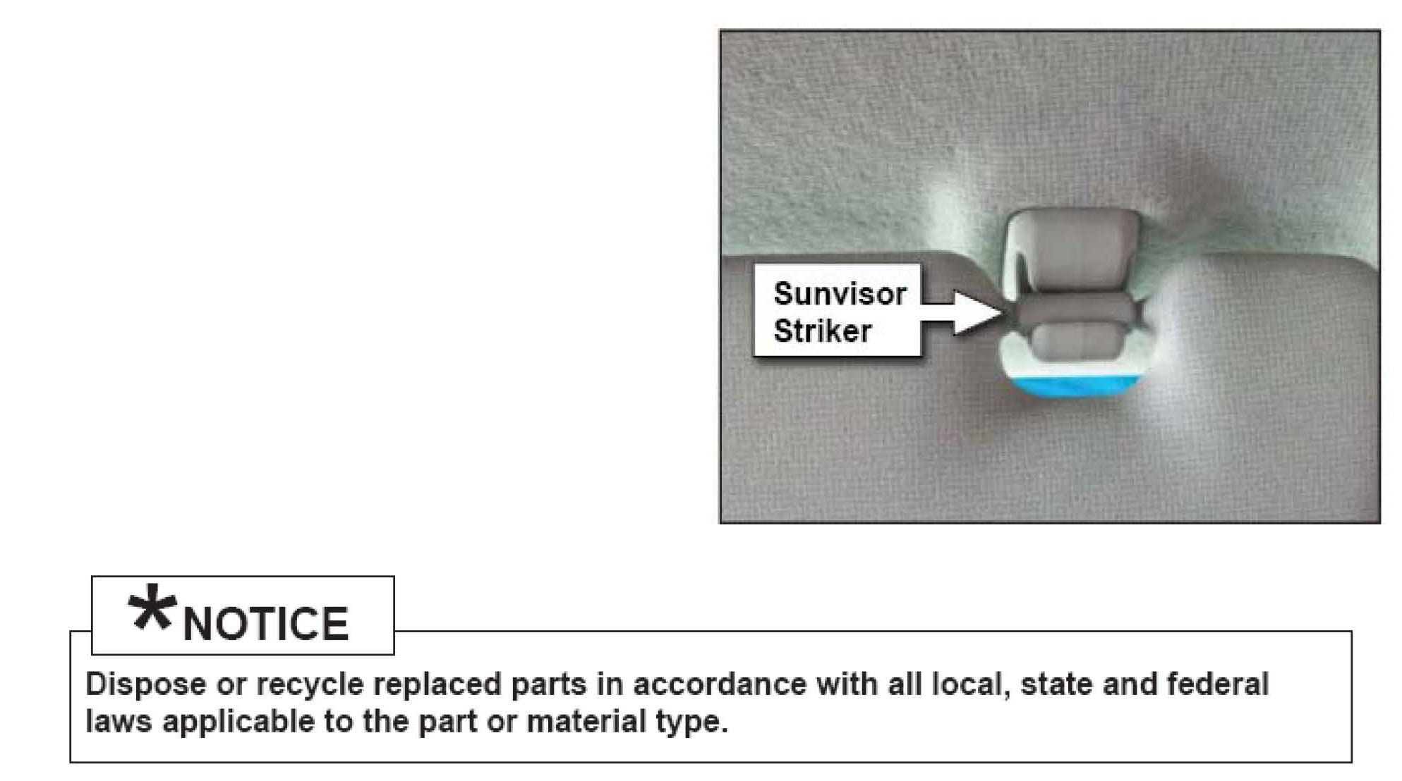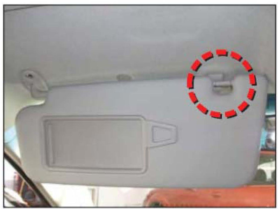 7. If the sunvisor striker is mis-aligned with the sunvisor retainer, perform the following procedures.
