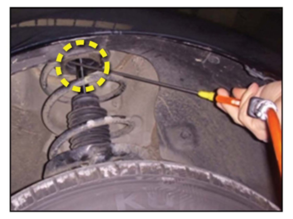 3. Use a clean rag or compressed air to remove any dirt or foreign material from the surface area where the strut insulator pad will be attached.