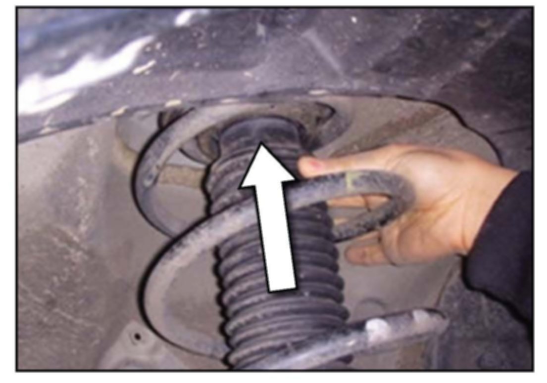 7. Push dust cover bumper rubber upward to attach the pad to the bottom of the insulator strut bearing.