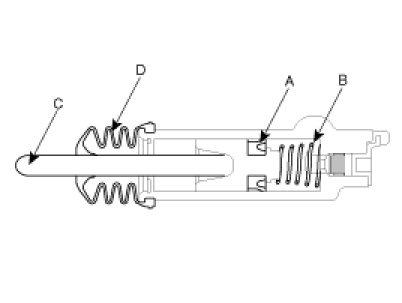 2. Install the valve plate(A), Spring(B), push rod(C) and boot(D).
