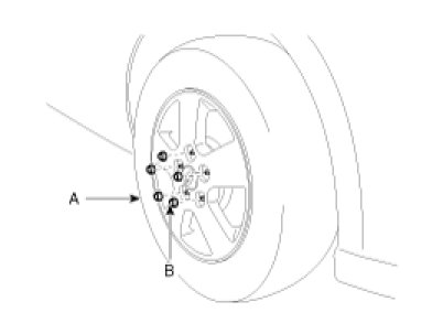 Be careful not to damage to the hub bolts (B) when removing the front wheel and tire (A).