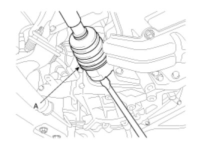 - Use a pry bar(A) being careful not to damage the transaxle and joint.