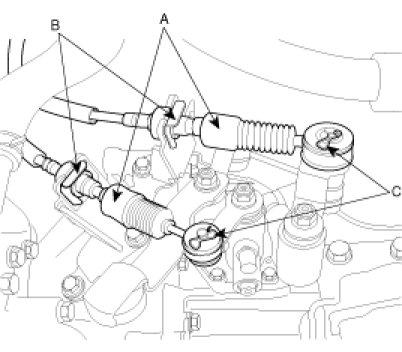 25. Disconnect the driveshafts(A,B) from the transaxle. .