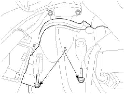 22. Disconnect the roll stopper bracket bolts(A,B).