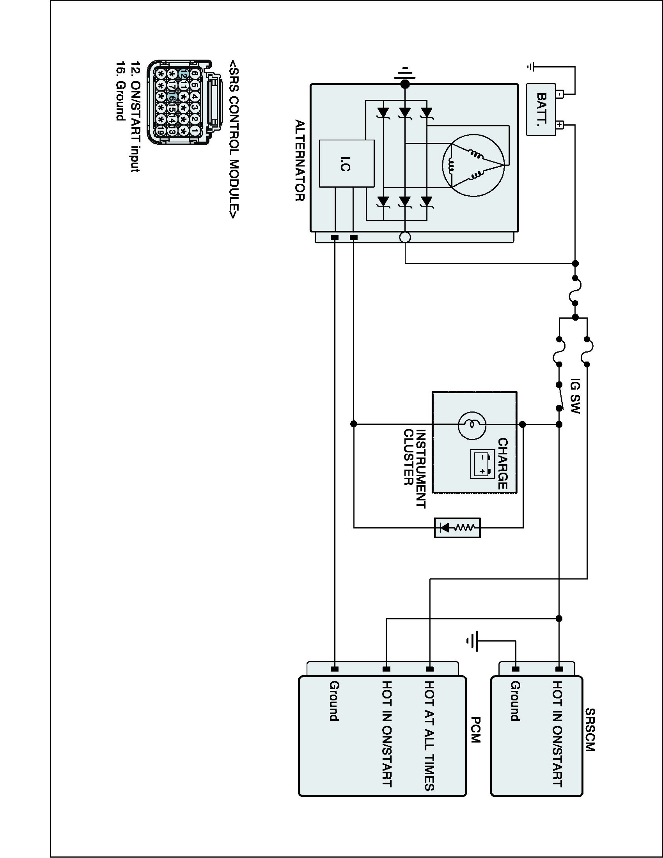 SRSCM (Supplemental Restraints System Control Module) checks input voltage when "IG ON" to make air bag system work properly.