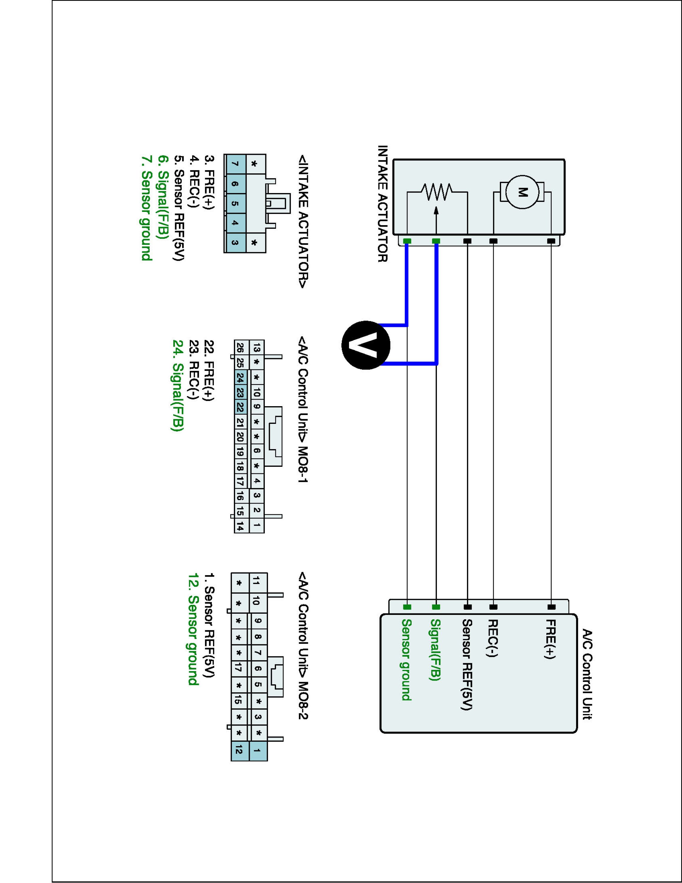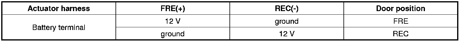 5. Verify that the temperature actuator operates to the FRE position with reverse connecting. (REC (-) and FRE (+)) (Component side)