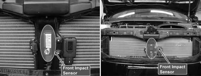 Front Impact Sensor (FIS)located at Front Center body of the front of engine room detects head-on collision. When FIS delivers collision signal to SRSCM, SRSCM checks if safing sensor located in SRSCM detects collusion. and if Front Center body FIS and safing sensor detects collision simultaneously, SRSCM operates front air bag.