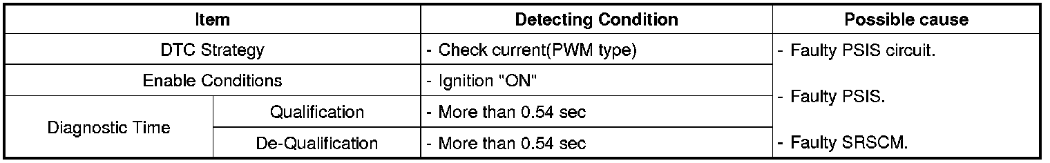 The SRSCM sets DTC B1403 if there is any fault in PSIS circuit.