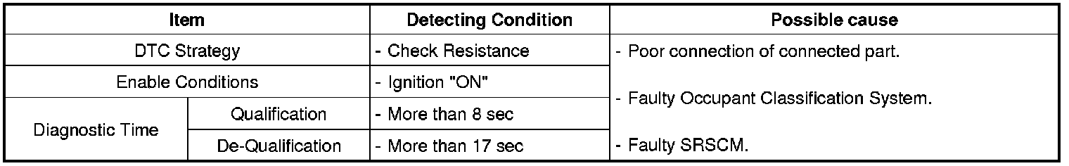 The SRSCM sets DTC B1449 if there is any error in communication between OC Passenger Sensor and SRSCM.