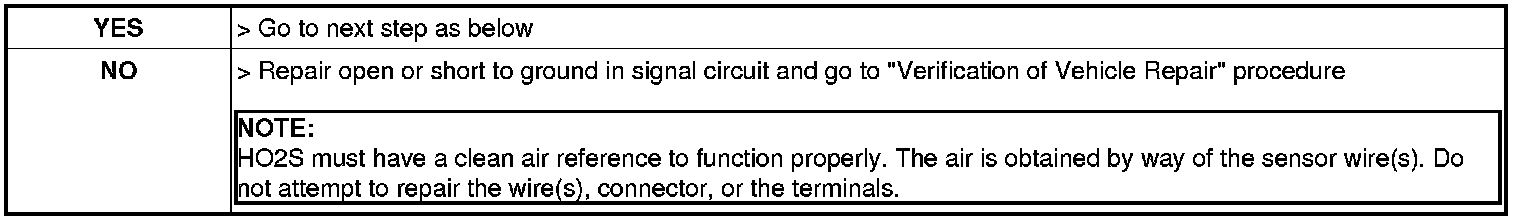 Measure voltage between VG terminal of the sensor harness connector and chassis ground.